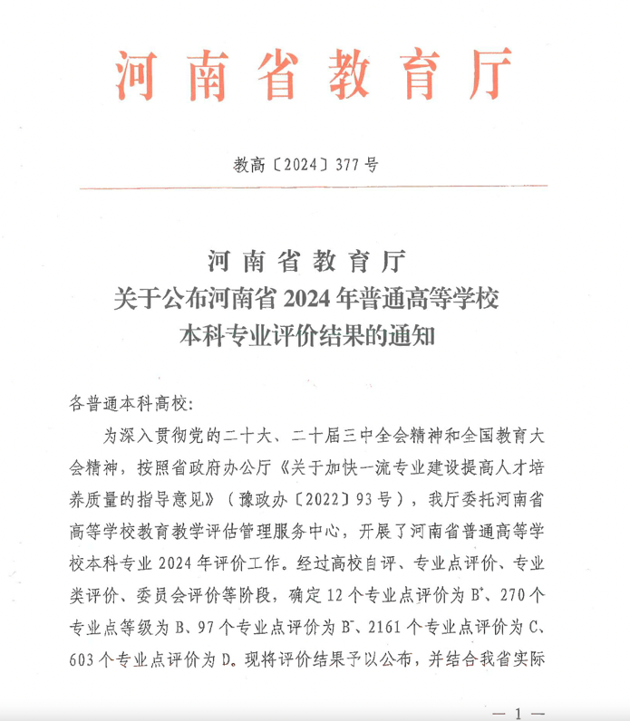 根据河南省教育厅《关于公布河南省2024年普通高等学校本科专业评价结果的通知》(豫教高[2024]277号),williamhill中国广播电视编导专业获得B-等次,排名在全省21所开设同专业的本科高校中名列前茅,延续了今年6月发布的《中国高校2024软科专业排名》全国第46(全部254所同专业高校前18%)的成绩,稳居国内第一梯队。