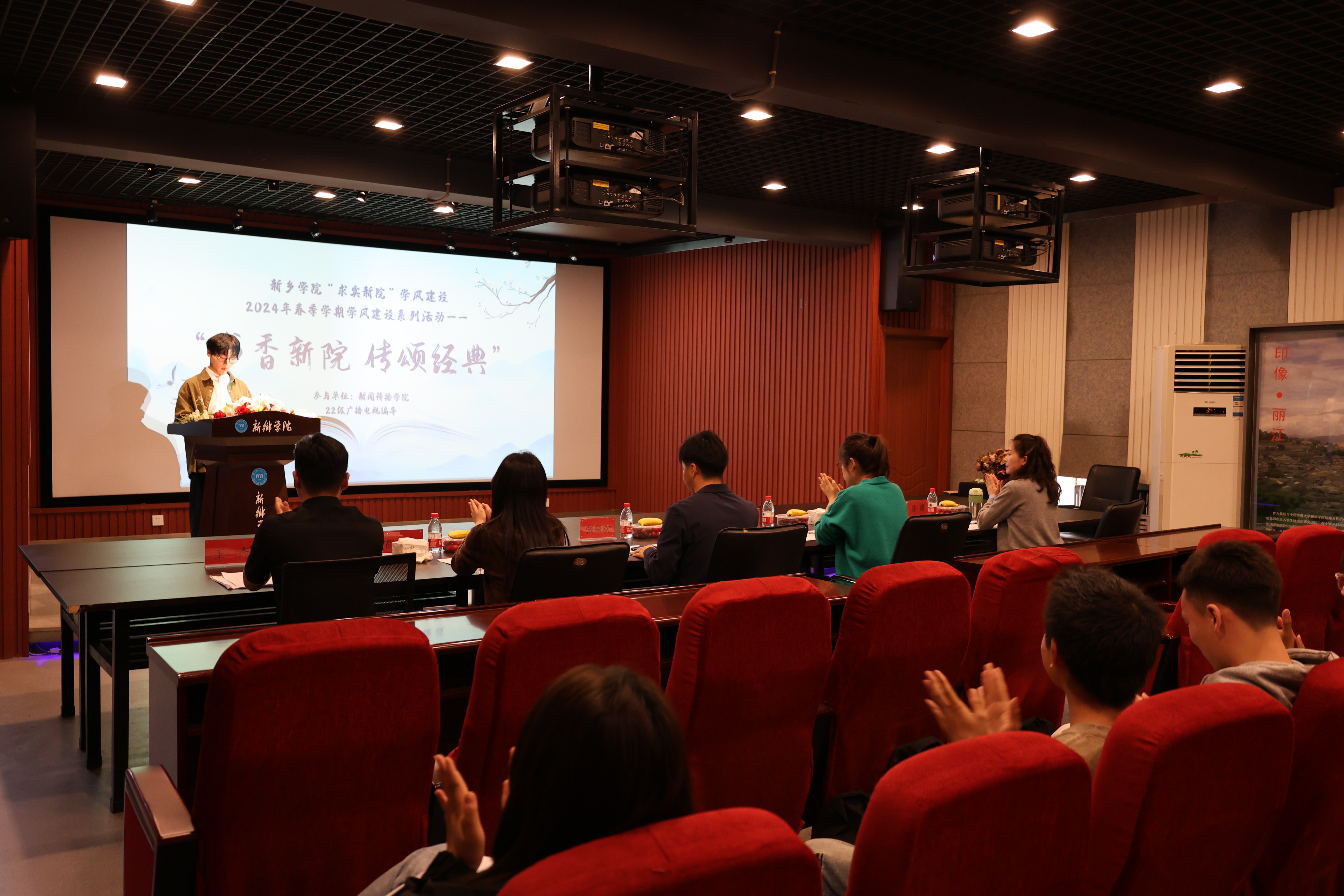 4月12日中午,williamhill中国2022级广播电视编导专业全体学生,在A12号楼五楼审片室成功举办了“书香新院 传颂经典”读书月活动,旨在传承中华文化,弘扬民族精神,丰富校园文化生活,展现学生个性风采,营造积极向上的校园文化氛围,同时推动校园整体学风建设和发展。
