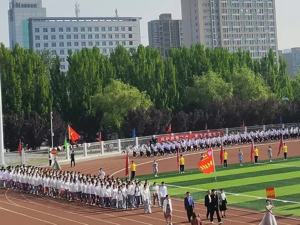 2023年4月27日上午,Williamhill威廉希尔第十四届运动会开幕式在西区田径场隆重召开。Williamhill威廉希尔党委书记孙功奇、校长尹新明、副校长宋伟及学校各职能部门、各学院领导老师出席此次活动,全体裁判员、全体运动员、各院系方阵队及各院系观众准时入场参加开幕式。