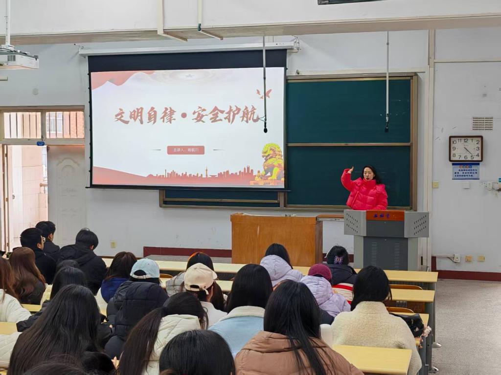 活动将文明出行与交通安全教育作为首要环节。学院向全体学生发出倡议,重点强调文明出行教育,号召同学们自觉遵守交通规则,杜绝逆行、随意横穿马路、骑行违规车辆等行为,倡导文明出行的良好风尚。在随后召开的各年级主题班会上,辅导员老师通过播放交通安全警示片、剖析真实事故案例、安全知识游戏答题等方式,生动形象地普及了交通法规,让学生深刻认识到交通陋习的危害,有效提升了出行安全意识。