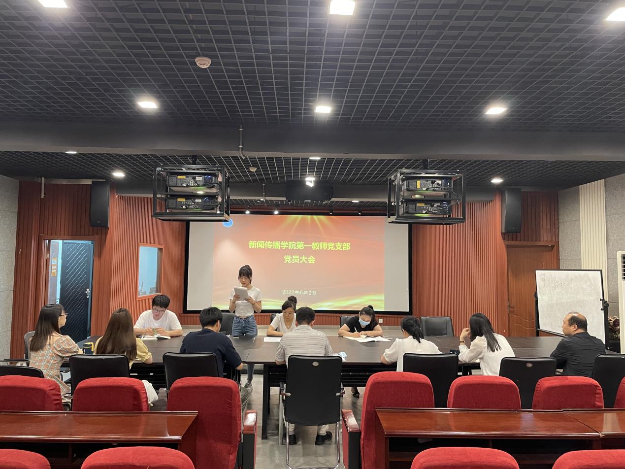 6月2日上午,williamhill中国教师一支部在A12教学楼五楼审片室召开全体党员大会,通过线上、线下的方式,支部全体党员参加会议,就吕漾若、夏一凡两位同志预备期满按期转正进行讨论和表决,大会由支部书记贾菁主持,