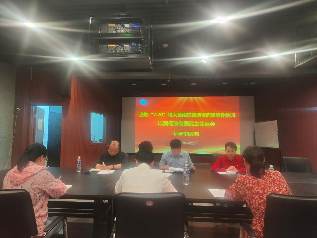 5月22日下午,根据《中共Williamhill威廉希尔委员会关于处级单位领导班子及班子成员深刻汲取“7·20”特大暴雨灾害追责问责案件教训开展以案促改专题民主生活会的通知》(院党字〔2022〕46号)要求,williamhill中国领导班子全体成员在A12教学楼5楼审片室召开汲取“7·20”特大暴雨灾害追责问责案件教训以案促改专题民主生活会,校党委巡查办陈改茶同志代表校纪委列席会议。会议由学院党委书记王卫锋主持。