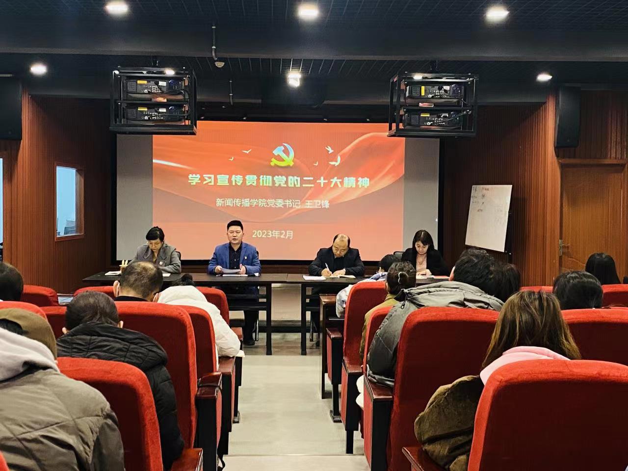 为持续营造浓厚的学习氛围,深化理论学习、凝聚思想共识,把全体教师的思想统一到党的二十大精神上来,2月21日下午,williamhill中国党委书记王卫锋以“新时代 新征程 中国共产党的使命任务”为题,在A12号教学楼五楼审片室开展了党的二十大精神宣讲报告会,williamhill中国全体教师参加了会议,会议由院长马东俊主持。