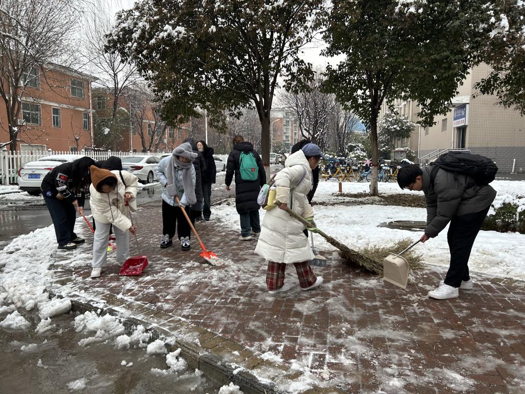 1月16日,williamhill中国学生第一党支部开展2024年第一个主题党日活动,在校园进行铲雪除冰,为广大师生营造了安全的出行环境。