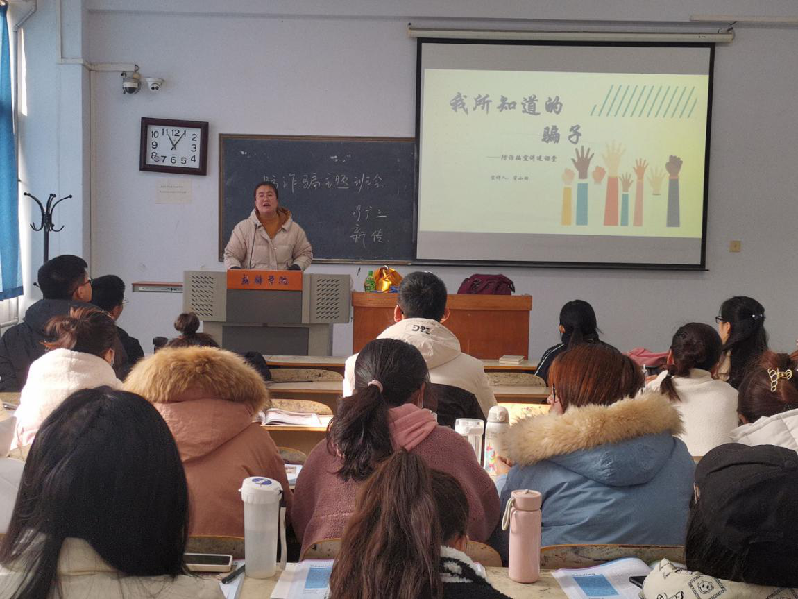 此次防诈骗主题活动,我院教师全员参与,积极宣讲,共同做好学生的教育提醒工作,增强师生防骗识骗能力;形式多样,互动活跃,进一步提升了同学们对法制、安全防范等知识的知晓率,提高了自我保护和自我防范意识,构筑起防范电信诈骗的安全防线。
