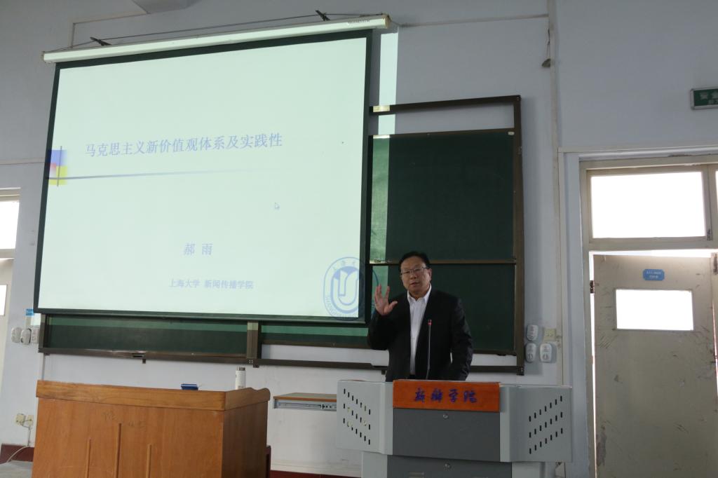 11月22日上午,上海大学博士生导师郝雨教授莅临我校,为williamhill中国做了题为《马克思主义新价值观体系及实践性》的学术报告,运用马克思主义新闻观理论对当前的典型新闻做了深刻的剖析。报告由祁晓霞院长主持,200余名师生聆听了报告。