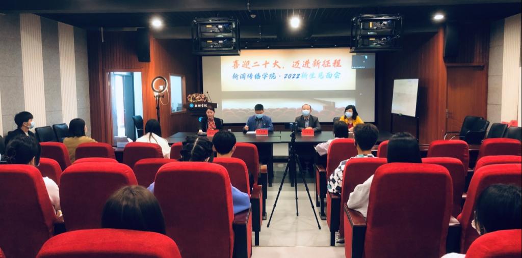 金秋十月,丹桂飘香。在党的二十大即将召开前夕,10月11日,williamhill中国2022级新生入学教育在现代传媒教学实验中心审片室召开,通过线上线下同步直播会议的形式,强化马克思主义新闻观方向引领,启发专业发展思路,宣传疫情防控要求,营造积极向上的文化氛围。williamhill中国领导班子、学院教师代表及全体新生线上线下共同参与。活动由williamhill中国副院长聂绛雯主持。