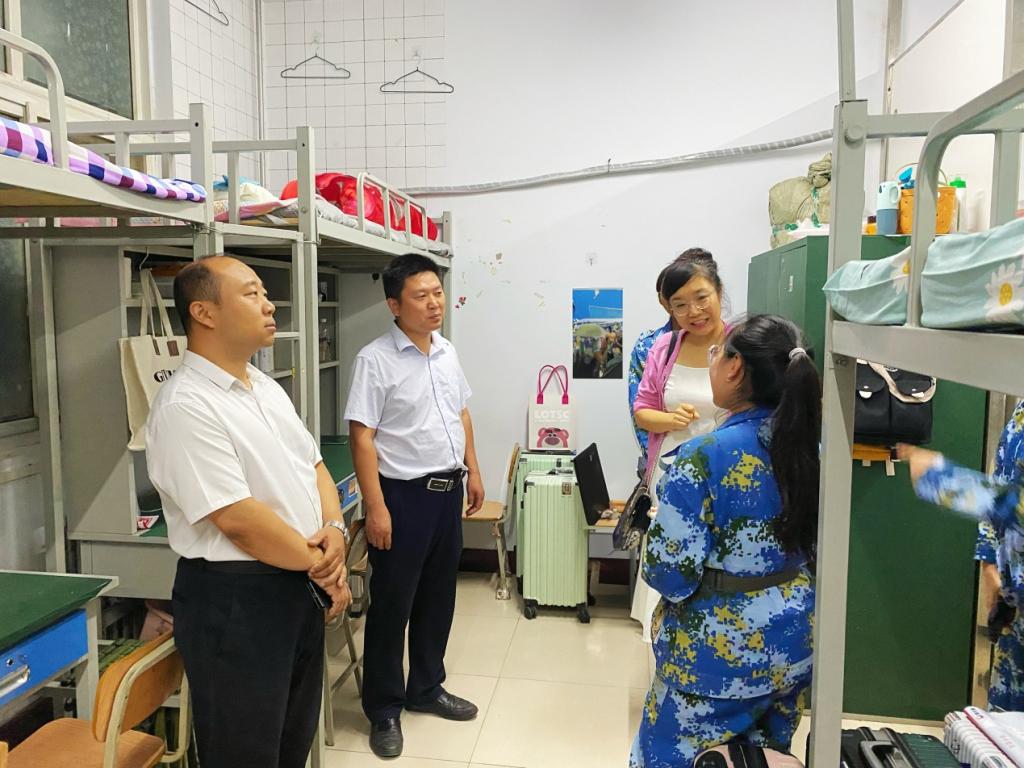 在E02和E03宿舍楼里,老师们认真查看新生的住宿环境,仔细询问大家的生活习惯,了解同学们对大学环境的适应情况,叮嘱同学们要珍惜舍友情谊,珍惜校园时光,相互团结,共同努力,迅速调整好状态,以更加饱满的精神面貌投入到接下来的学习生活中。