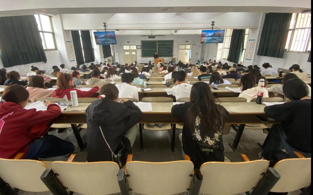 当天下午15:00,在院学工办、分团委的协调下,新生辅导员郭楠、杨佳慧、曹菁、张夏等老师在A11教学楼524、525教室认真布置考场、组织全体2023新生有序入场、认真答题,整个考试流程秩序井然,符合学校对复测工作的要求。