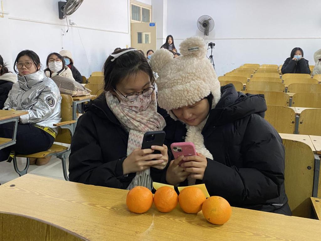 会后,老师们细心准备了寓意心想事成的橙子和考研文具,送给每一位考研学子,鼓舞士气、传递祝福。同学们纷纷表示,要奋力备战、认真考试,争取发挥最好的水平。
