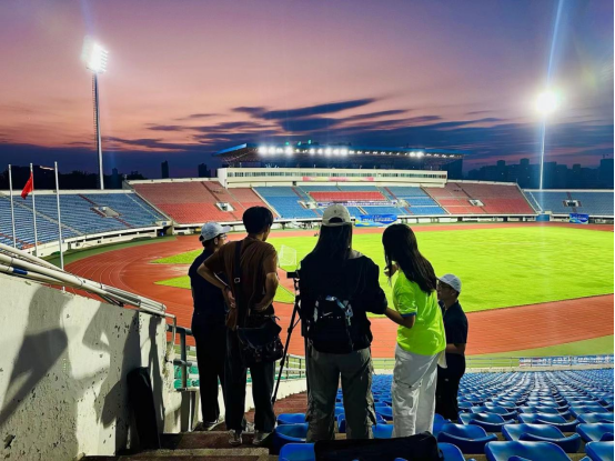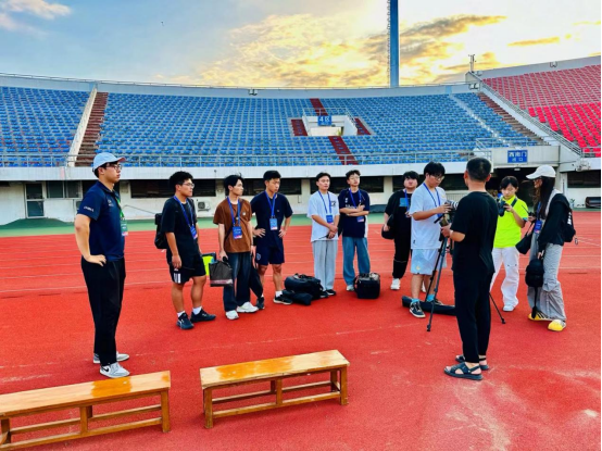 摄像辅助团队由两名专业教师、九名学生组成,他们均具备较高的专业水准,能够熟练运用各类摄影摄像设备。在正式拍摄前,成员们对比赛规则和赛程进行了详细了解,并且对场地进行了多次勘察。