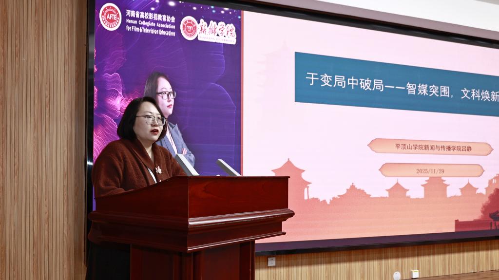 平顶山学院新闻与传播学院院长吕静带来《于变局中破局——智媒突围,文科焕新的传媒类样本》的主题分享。她详细介绍了平顶山学院通过跨学科融合、高标准实验室建设、项目制教学改革等举措,推动传媒专业转型升级的实践路径。吕静指出,文科专业不应畏惧技术变革,而要主动拥抱人工智能、大数据等新技术,以技术赋能文科教育,实现学科内涵式发展。